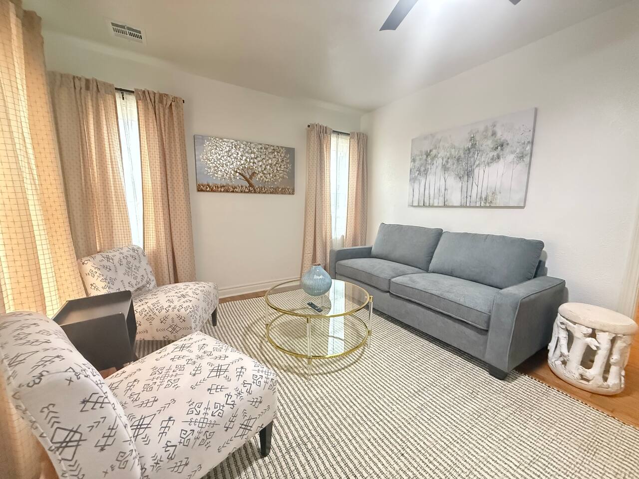 Clean, modern, and centrally located — this refreshed 2BR/1BA OKC cottage is the perfect home base for work or play. Enjoy stylish interiors, fast WiFi, smart TV, a fully equipped kitchen, and cozy bedrooms, all minutes from Downtown, the State Fairgrounds, and major highways.