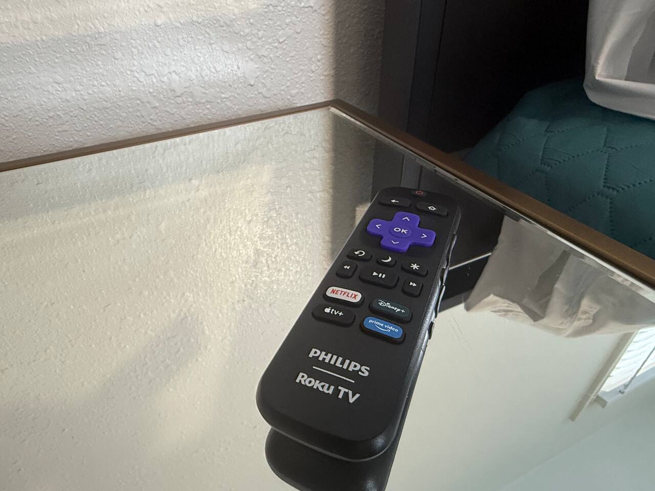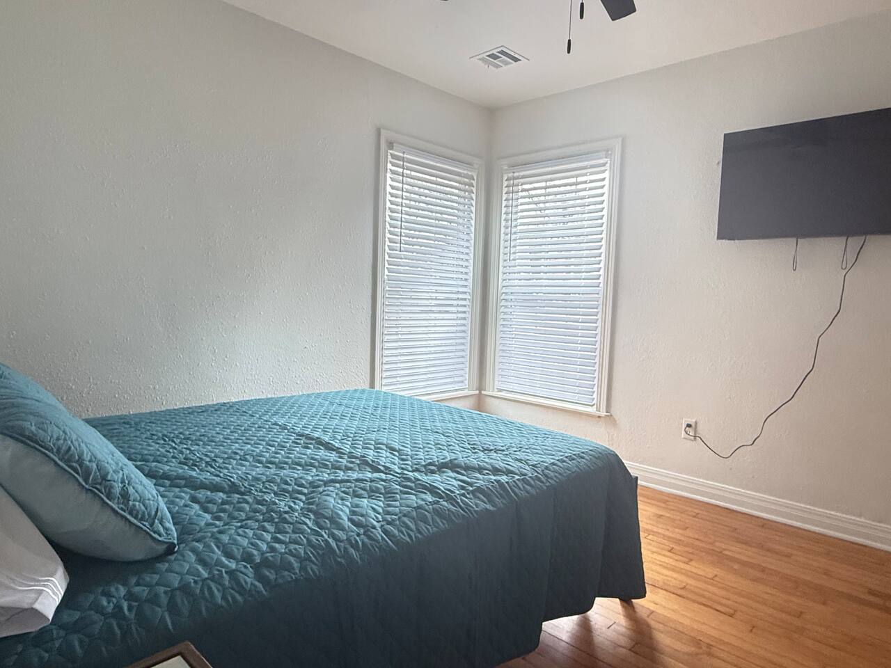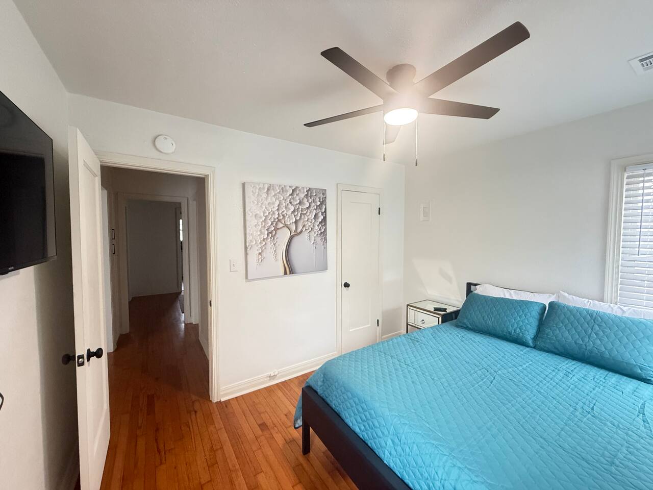 There are two homes on this property. This is the front space and has 2 bedrooms and 1 bathroom. Both rooms have queen-sized beds and TVS.