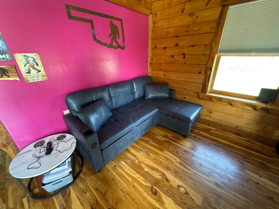 Why We Love This Lake Eufaula Log Cabin This pet-friendly log cabin near Lake Eufaula is the perfect mix of comfort and adventure. Here’s why guests love it: ✔ Boat Parking + Close to Marina – Bring your boat! We’ve got plenty of space and easy access to Lake Eufaula Marina for all your fishing and water fun. ✔ Stock Tank Pool & Hot Tub – Stay cool on summer days and soak under the stars at night. Open May - September ✔ Pet-Friendly Getaway – Because the best trips include your four-legged friends. ✔ Smart TV + Sleeper Sofa – Stream your favorites and enjoy extra sleeping space for the whole crew. ✔ Covered Deck + Outdoor Grill – Perfect for grilling (charcoal not provided) and relaxing after a lake day. ✔ Convenient Location – Just off I-40, close to dining, marinas, and lake adventures. ✔ Tornado Shelter – Added peace of mind for Oklahoma weather. Inside, you’ll find a tiny home-style kitchenette with all the essentials to prep meals (no traditional stove) plus a charcoal grill outdoors for that true lake-life experience. Whether you’re here to fish, boat, swim, or just unwind, this cozy Lake Eufaula cabin rental is ready to host your next adventure. We have a tornado shelter. Just 1 hour and 20 minutes from Tulsa, a breezy 1 hour and 40 minutes from OKC, and a hair over 3 hours from Dallas – we're nestled right in the heart of adventure! Pack the boat, fishing gear, golf clubs, and hiking boots – 'cause this state park's got it all! Make the most of your stay! Both bedrooms here come with brand-spankin'-new queen beds, complete with bedside buddies (tables, touch lamps, usb ports, and ceiling fans), and the darkest of shades for a cozy slumber. Sofa also turns into a bed. Now, here's the scoop: our place has an aerobic septic system, so keep it simple – flush only toilet paper and human goods down the drain. Bigfoot approved! 🌲🌿 We are conveniently located on Old Lake Eufaula road giving you easy access to I-40 or Hwy69. Travelin' with buddies? Check out our other cabin to fit in 6 more pals!