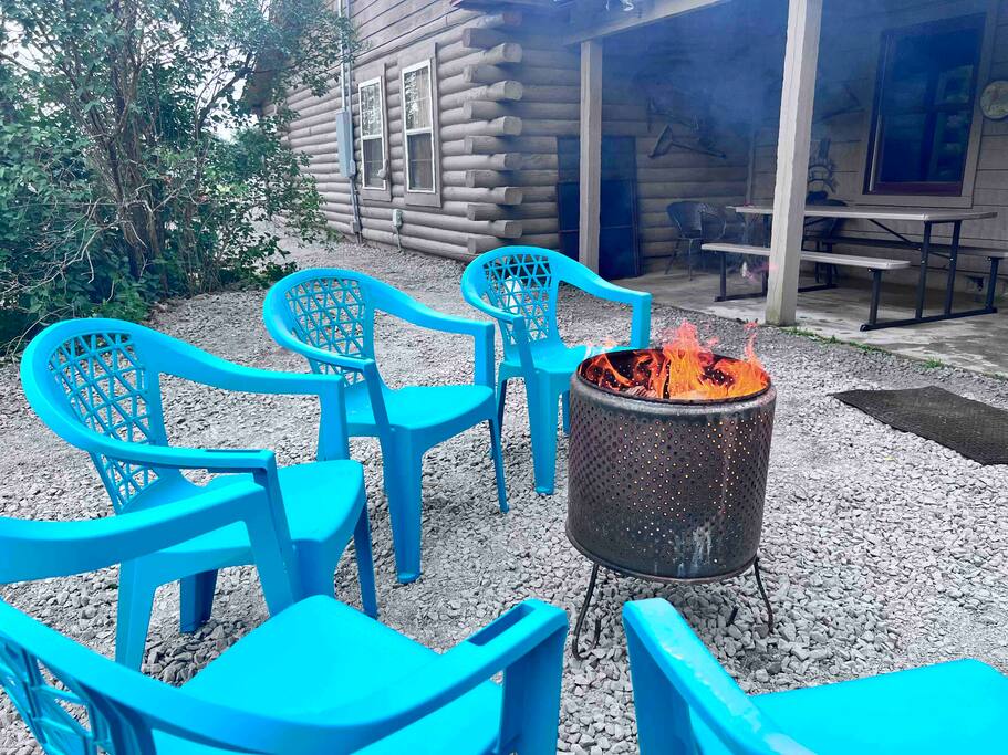 The property hosts 2 Airbnbs. Bigfoots Tiny Log Cabin, Sweet Cabin Suite Cabin (this listing). if you have a larger group or want to invite some friends. Please see all our listings to check availability. Each rental has designated "private spaces" that are offset from each other and unique in their own way. Each rental has its own grill and fire pit. Each rental is a separate structure from one another. This one is the back side of duplex with private covered hot tub and patio equipped with picnic table.
