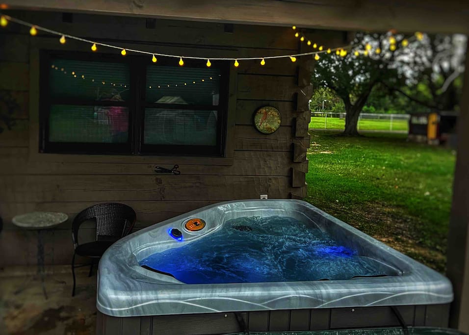 -Fire Pit & Firewood -Charcoal Grill -Covered Hot Tub -King Size Bed -Boat & Trailer Parking -Soak Tank Pool (Shared) -Outside of Lake Eufaula State Park - Storm Shelter Extra Sleeping: -Queen Sofa Bed -2 Futon Chairs (2 people) The Studio can accommodate up to 6 guests. But it is designed with couples in mind.